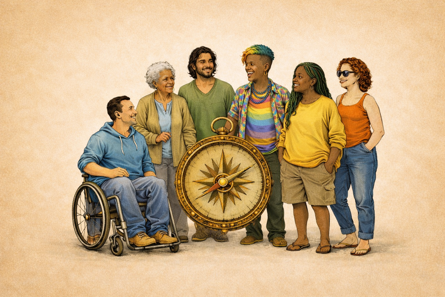 Eine Vision für inklusive Teilhabeplanung. Im Zukunftsladen steht ein runder Tisch, an dem Betroffene ihre Zukunft selbst gestalten – mit Unterstützer:innen, die sie auf ihrem Lebensweg begleiten. Angehörige werden zu Held:innen im Hintergrund, Fachkräfte moderieren auf Augenhöhe. Recovery-orientiert und dialogisch.